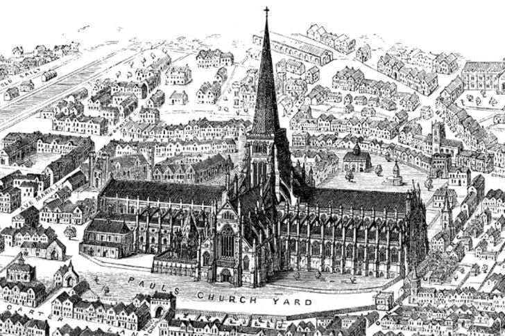 Ce chef-d’œuvre gothique médiéval a dominé l’horizon londonien pendant des siècles. Reconstruite après des incendies antérieurs, elle présentait une flèche massive et des sculptures en pierre complexes, servant de centre religieux et social.
