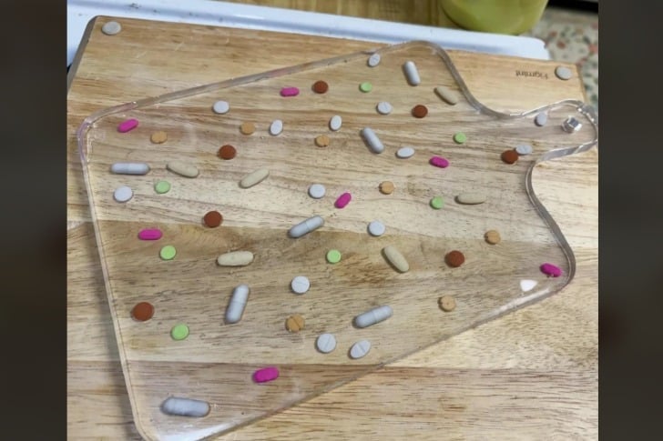 #36 Resin charcuterie board with prescription pills embedded in it