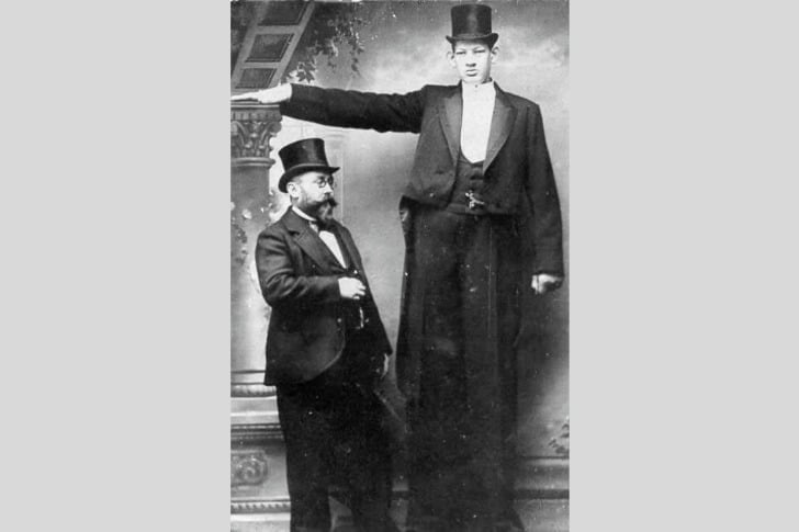 Julius Koch from the German Empire stood 8 ft 1 in and had his skeleton preserved in a Belgian museum. Born in the 1870s, he died at age 30 in 1902 due to gigantism complications.