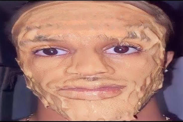 This meme shows a person covered in a thick layer of peanut butter, creating a cringey yet hilarious effect. It’s often used to mock failed beauty trends or when someone makes a questionable life choice—like trying a DIY skincare hack that goes horribly wrong. The deadpan expression under the peanut butter adds to the humor, making it a perfect reaction to any chaotic decision.