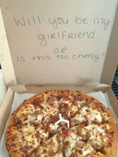 There are many ways to ask someone to be your partner. Some people prefer a quiet conversation, while others go for the “big gesture.” One guy decided to use a pizza box to pop the question. He wrote a pun about her “stealing a pizza his heart.”