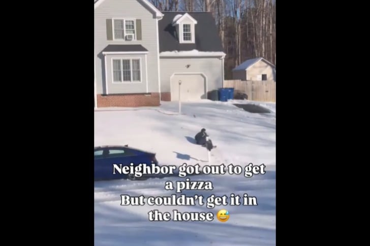 #32 Il vicino di questa persona fa fatica ad entrare in casa a causa del ghiaccio dopo aver ritirato la pizza