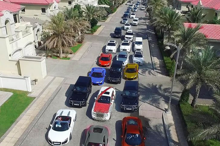Rush hour frustration is transformed into an extraordinary spectacle in Dubai. The city’s gridlock frequently showcases an impromptu luxury car exhibit, featuring an array of high-value automobiles.