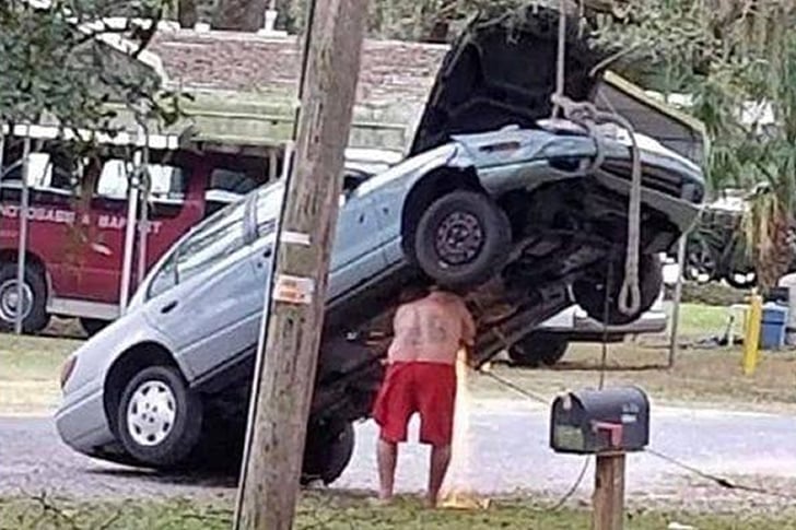 DIYに挑戦する人々を見るのはいつも励みになり、新しいことに挑戦する彼らの勇気は称賛に値します。DIYの最初の試みで素晴らしい結果を出す人もいれば、かなりゾッとするような試みをする人もいます。例えば、木を使って車を持ち上げた人を見てみましょう。それだけでも十分に不安なのに、彼はその不安定に吊るされた車の真下に立って作業することにしたのです!