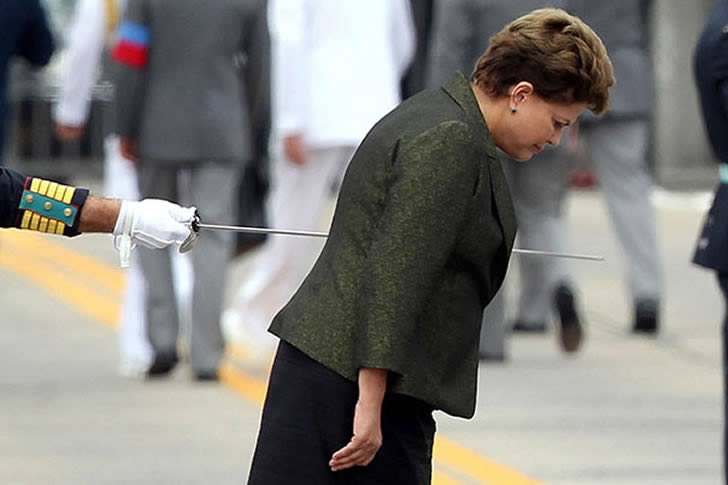 Ay, esto sí que duele. Claro, Dilma Rousseff no está realmente herida, pero casi lo parece. La primera vez que vi esta foto, pensé por un segundo que una espada la estaba atravesando, ¡qué susto! Su expresión también parece un poco dolorosa, pero es un truco visual realmente impresionante.