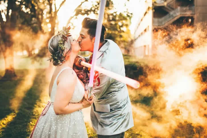 Idea divertente per foto di matrimonio a tema “Star Wars”