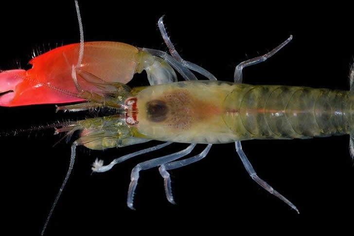 槍蝦是一種小巧、色彩鮮豔的甲殼類動物,通常只有1-2英吋長,牠那隻超乎尋常的大螯,與其流線型的身體相比,顯得有些滑稽地不成比例。牠們藏身於世界各地溫暖熱帶海洋的洞穴或珊瑚礁中,透過彈動螯來擊暈獵物。