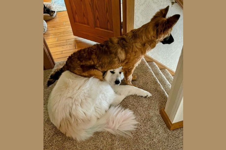 #11 私たちの“子犬”ムースは脳細胞が半分しかないみたい。パーソナルスペースなんて関係なし。他の犬たちは彼をただ許容しているだけ