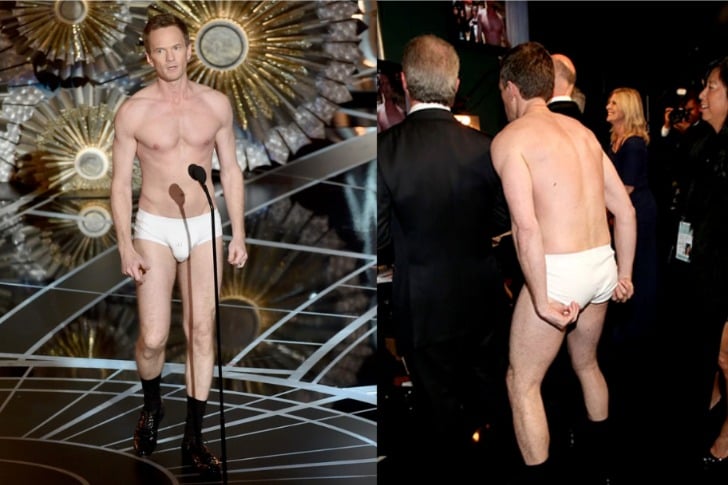 Lorsque Neil Patrick Harris a animé les Oscars de 2015, les producteurs ont tenté un sketch comique élaboré en référence au nominé du meilleur filmBirdman. Harris est apparu en coulisses vêtu uniquement d’un slip blanc moulant, faisant semblant de traverser les couloirs du théâtre avant d’entrer sur scène. La blague était censée parodier une scène célèbre du film dans laquelle le personnage de Michael Keaton déambule sur Times Square en sous-vêtements. Au lieu de cela, le moment a été mal reçu par les téléspectateurs, qui ont regardé l’animateur rester presque nu sous les lumières vives de la scène pendant plusieurs secondes inconfortables.