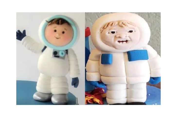 26. 息子が昨日1歳になりました。これは、宇宙がテーマのケーキのトッパーでした。左が注文したもの、右が届いたものです。