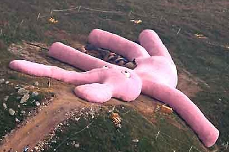 イタリア北部コレット・ファバ山の丘に、2005年に設置された巨大なピンクのウサギは、アートインスタレーションとして多くの人を驚かせました。長さ200フィート、高さ20フィートというその大きさは圧倒的で、内臓が飛び散ったようなデザインが空から落ちてきたような印象を与えます。訪れる人々に「ガリバー旅行記」の世界を体験させることを目的としたこの作品は、まさに異次元の存在感を放っています。