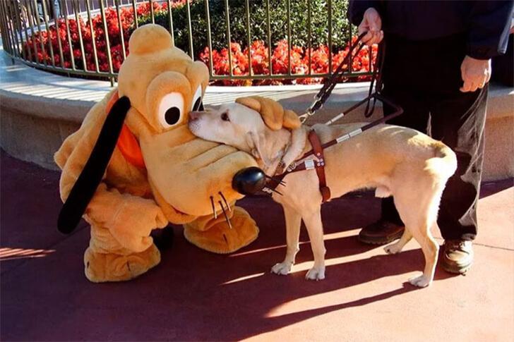 Pluto is one of Disney’s most beloved characters, and in this adorable photo, he meets a real-life dog who seems just as happy and excited to see him. The interaction is heartwarming, full of playful energy, and clearly an unscripted magical moment captured perfectly on camera — a memory worth saving!
