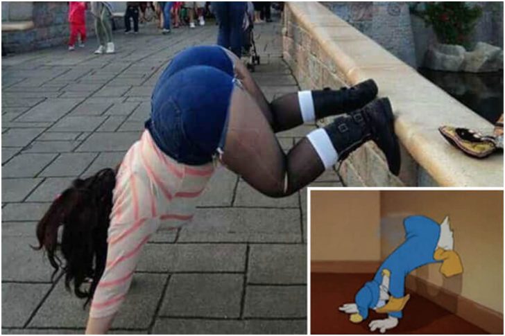 If you thought twerking was a modern pop star trend, think again — Donald Duck has been owning the dance floor long before Beyoncé or Taylor Swift! His moves have inspired fans of all ages to try their own spins, including this bold young woman in the photo.