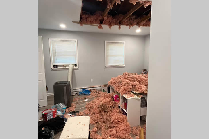 Para contextualizar, compramos nossa casa em março e isso aconteceu em julho. Desde então, foi reparado. O inspetor que contratamos depois disso disse que foi causado por uma combinação de mão de obra de má qualidade, falta de ventilação adequada no sótão e o calor/umidade ficando presos lá. Desde então, foi reparado.