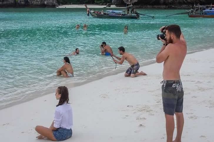 Ce jeune homme essayait juste de prendre une jolie photo de sa petite amie, faisant de son mieux pour trouver l’angle parfait. Puis il a regardé autour de lui et a réalisé qu’il n’était pas seul. Tout autour de lui, d’autres gars faisaient exactement la même chose.