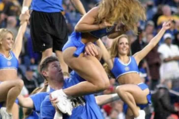 Aunque la imagen es divertida, muestra lo peligroso que puede ser el cheerleading. Lesiones como esguinces o incluso huesos rotos no son infrecuentes. La regla aquí: si quieres volar alto, ¡asegúrate de que la base sea sólida!