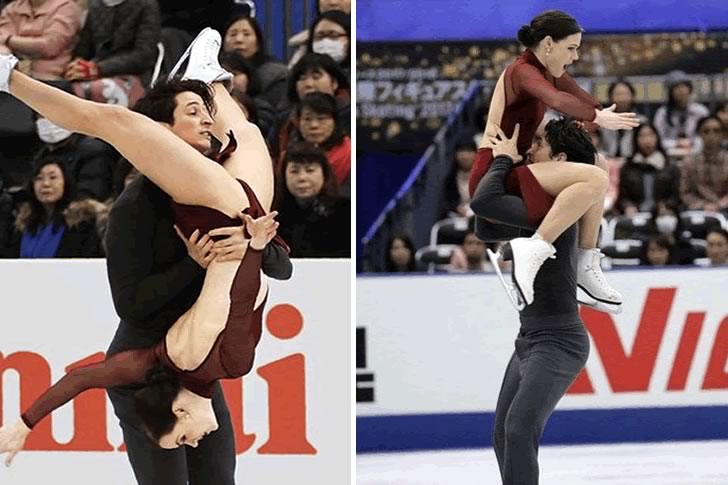 Y sí, incluso los mejores patinadores pueden tener sus momentos de “¡Ups!”. Un buen ejemplo: esta foto. Parece que nuestro dúo se sincronizó un poco… demasiado. Es casi como si estuvieran jugando a “¿Qué tan cerca podemos llegar sin convertirnos en uno?”. ¡Es una competencia reñida!