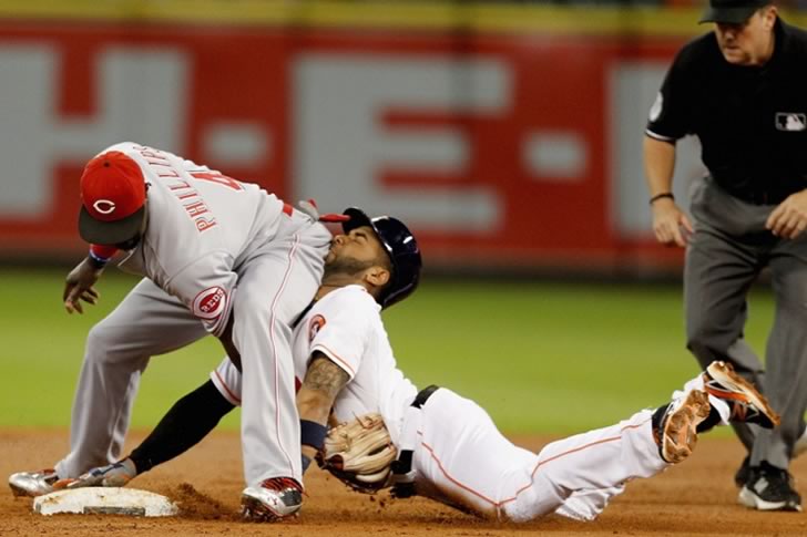Capturado en este momento decisivo: el fotógrafo lo congela a mitad de su deslizamiento mientras toca la base, al mismo tiempo que tuerce su cuerpo en lo que parece ser un doloroso pretzel. Su rostro muestra a partes iguales determinación y una expresión de “¿Por qué a mí ahora?”. Clásica prueba de que las jugadas “safe” a menudo se reducen a milímetros, y a veces implican una incomodidad repentina. ¡Pero bueno, los ganadores hacen ese sacrificio con gusto!