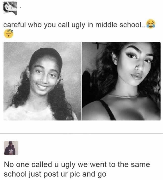 這些人在社交媒體上說謊,結果人贓俱獲 回首國中歲月 Advertisements 霸凌是個嚴重的問題,但為了博取同情而編造故事,這真是太糟糕了。這個女孩分享了一篇「蛻變」貼文,比較了國中時期和最近的照片,並配文說大家以前都叫她醜女。 Advertisements 上頁下一頁 她的同情計畫失敗了,因為一位前同學在貼文下留言。他們提醒她,她其實是學校裡最受歡迎的女孩,從未被霸凌過,揭露了她「倖存者」敘事的謊言。 Advertisements PREV NEXT PAGE