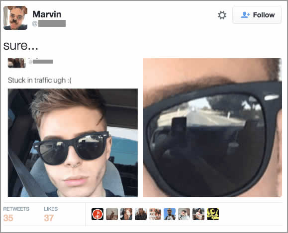 這些人在社交媒體上說謊,結果人贓俱獲 倒影說明了一切 Advertisements 真是令人費解,為什麼會有人覺得有必要謊稱自己塞在車陣中。再者,如果你要編造一個無聊的困境,至少也該檢查一下周遭是否有確鑿的證據。這個傢伙在這兩項考驗上都慘敗了。 Advertisements 上頁下一頁 他拍了一張自拍照來「證明」自己的沮喪,但墨鏡上的倒影卻出賣了他。他的墨鏡清楚地顯示出一條空蕩蕩的馬路,沒有一輛車或一個人影,將他的謊言暴露給他社群上的所有人。 Advertisements PREV NEXT PAGE