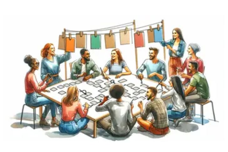 Comece com uma frase de uma história, depois passe para a próxima pessoa que adiciona outra frase, continuando a girar em círculo várias vezes até que retorne ao iniciador para uma conclusão.