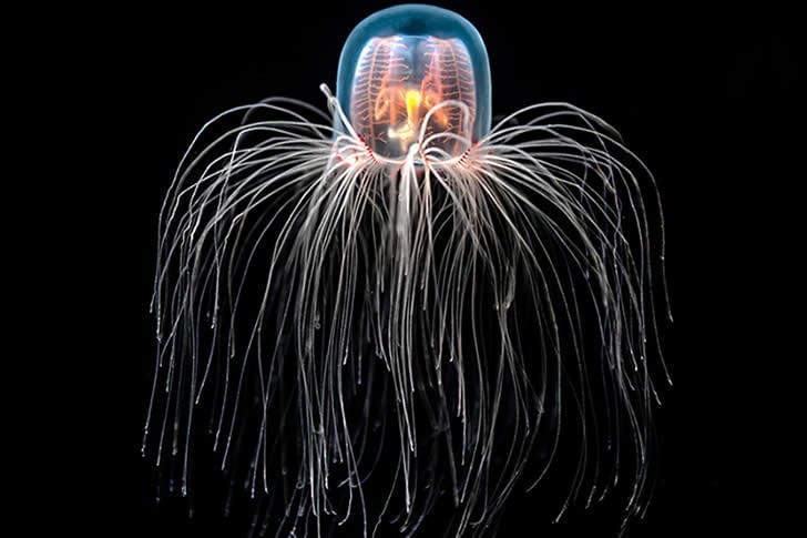 A medusa imortal é uma criatura minúscula, em forma de sino, com apenas 4,5 milímetros de largura, corpo transparente, estômago vermelho vibrante e até 90 delicados tentáculos brancos. Ela flutua em oceanos quentes por todo o mundo, parecendo uma medusa pequena como qualquer outra — até que algo dê errado.