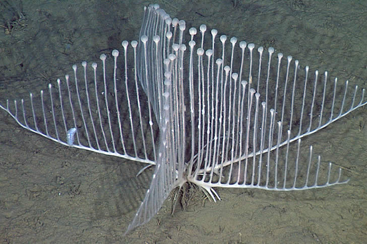 A esponja-harpa é uma esponja carnívora de águas profundas que se assemelha exatamente a uma harpa em miniatura ou um candelabro, com “cordas” verticais revestidas de pequenos ganchos. Ela cresce no fundo lamacento do mar, entre 3.000 e 11.000 pés de profundidade, na costa da Califórnia.
