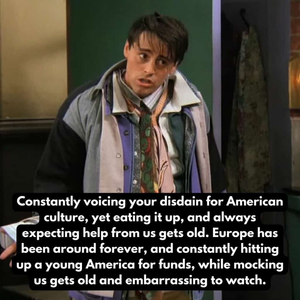 Honnêtement, nous sommes tous un peu coupables de profiter les uns des autres. Les Américains sont assurément coupables de consommer la culture européenne, tandis que les Européens font de même avec la culture américaine.Mais n’oublions pas que le monde entier est interconnectéet que chacun d’entre nous dépend de l’autre de manière légèrement différente.